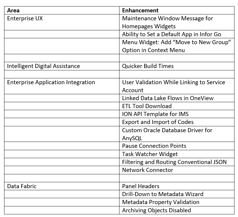 A similar set of features will be available in the next on-premise release of Infor OS. A full list of new features, bugs fixed, and other documentation can be found on Infor Xtreme. Learn more about Infor OS here or contact us anytime.