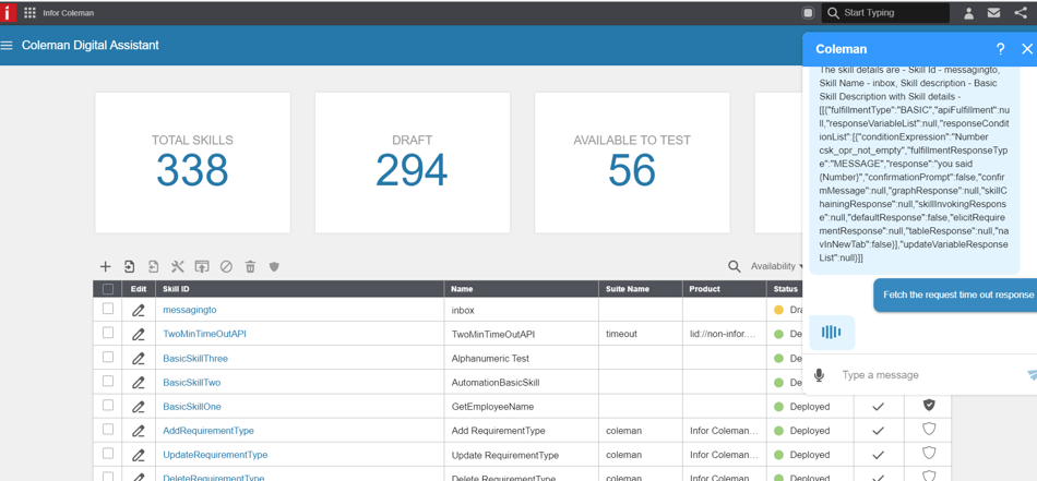 In April 2024, Infor Coleman AI was renamed and simplified to Infor Artificial Intelligence (AI). The functionality and services of Infor Coleman AI are still available within the InforOS ecosystem, even as the Coleman name has been retired.