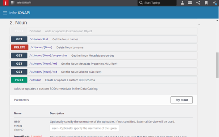 - A new API to register custom BOD metadata with Data Catalog is now available. The POST /v2/noun API takes the metadata content as part of the request body instead of using form data parameters. POST /v1/noun has been marked as deprecated.