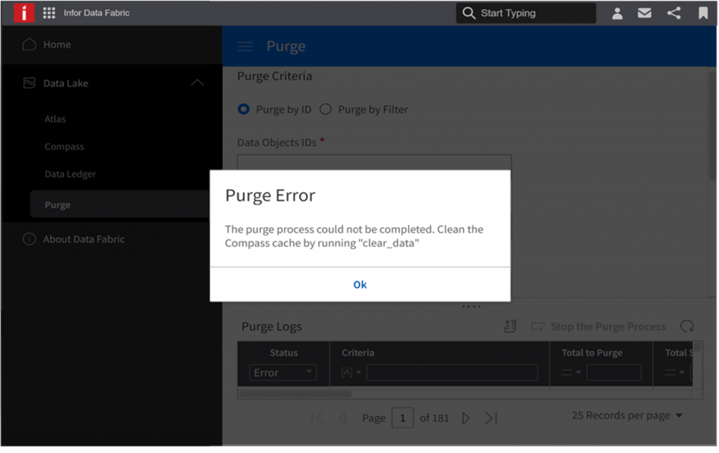 - Under specific circumstances where a user-driven purge fails to re-sync Compass cache, users are informed of a manual clean-up activity to run a stored procedure.
