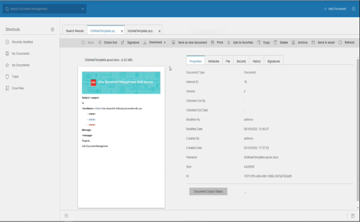 - IDM Document Output Send Email API is enhanced to support the ability to select which template is used.