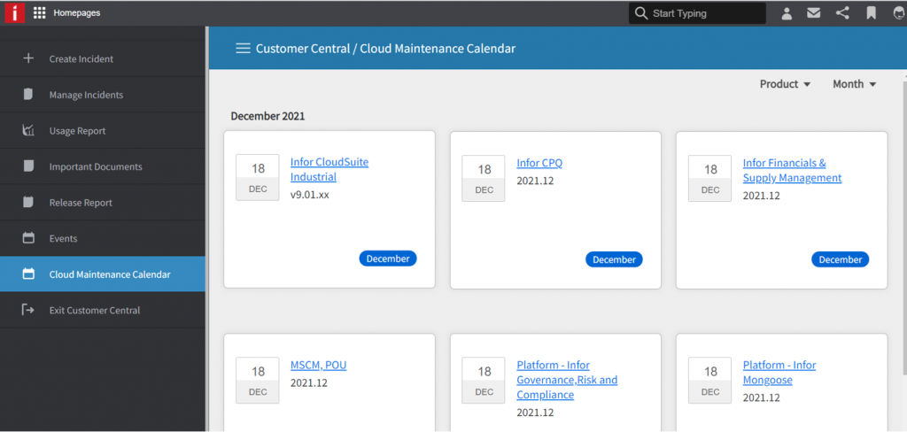 - The multi-tenant release calendar is now available from Customer Central for Concierge customers. Capabilities include filters for Product Line and Month and a to the master KB for each product.