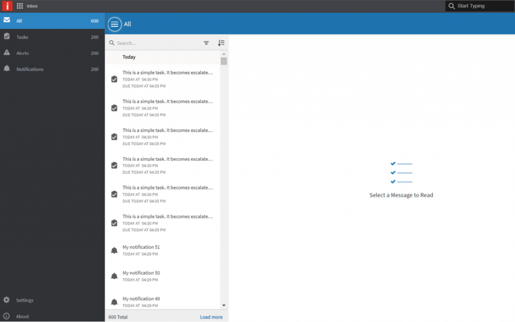 - For users with the role INBOX-PowerUser, a ‘load more’ option is available in the Inbox application to load more items from the backlog. New items are shown right away.