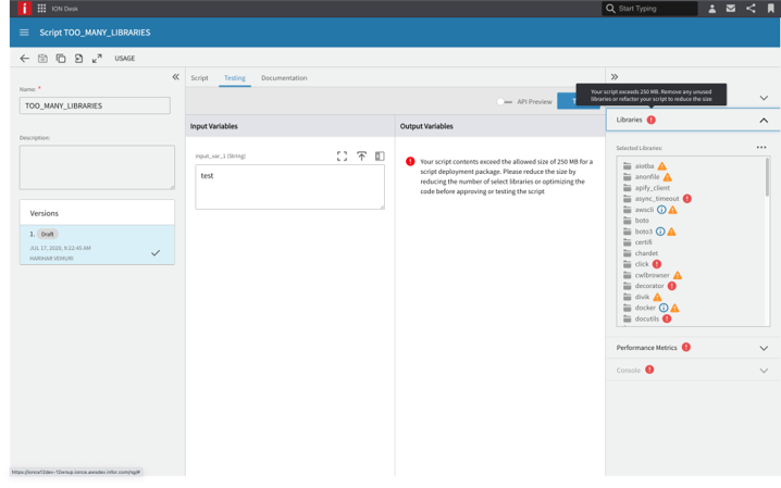 - ION Scripting will surface warnings if a script’s included libraries exceed 250 MB.