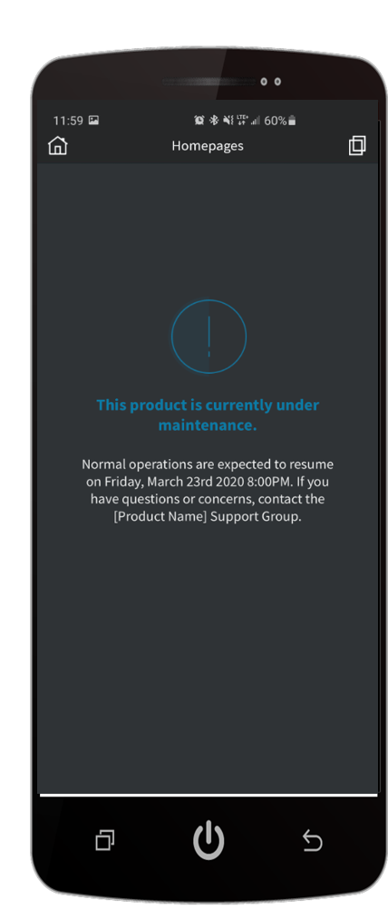 - Maintenance Window Message for Homepages Widgets:
