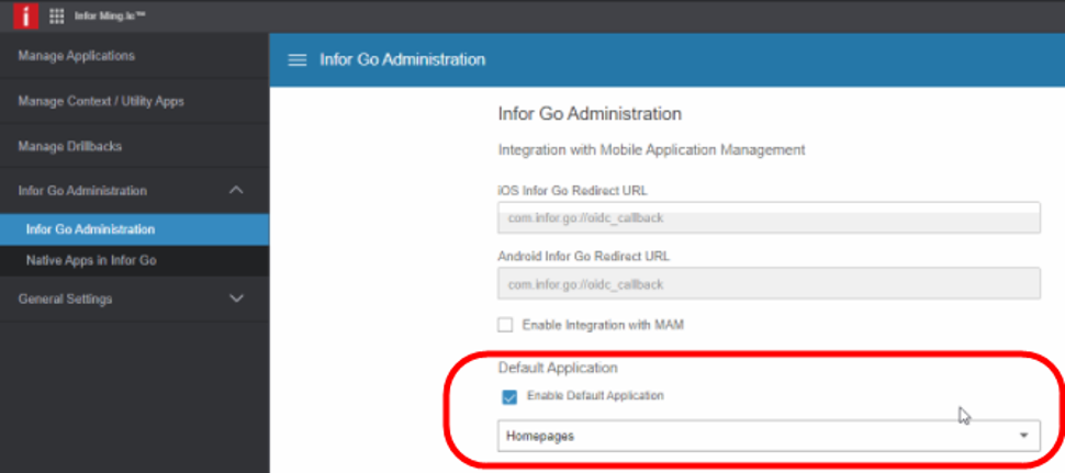 - Administrators can now set a default application within Infor Go.