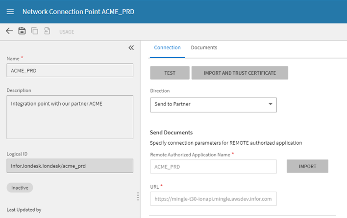 - A network connection point is available to enable integration with an ION installation that is part of Infor OS on-premises.
