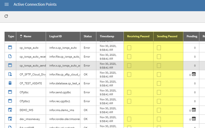 - In the Active Connection Points page you can pause more types of connection points.