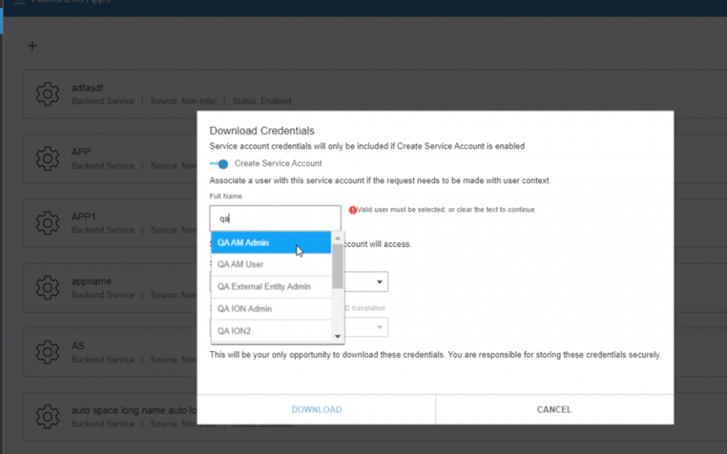 - You can only link valid users to a service account, while creating an Authorized App of type ‘Backend Service’.