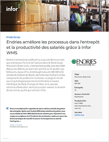 Endries améliore les processus dans l'entrepôt et la productivité des salariés grâce à Infor WMS