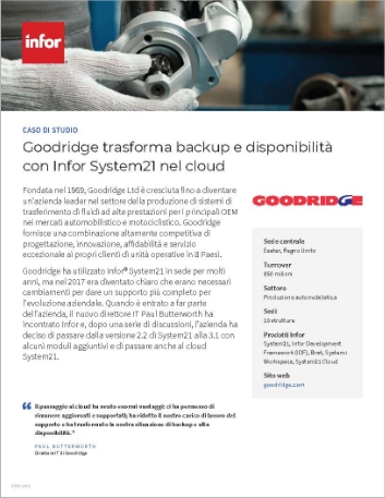 Come azienda fortemente concentrata sul fornire ai propri clienti i migliori prodotti di categoria, Goodridge sapeva di dover mantenere le proprie operazioni il più efficaci possibile e passare al cloud.