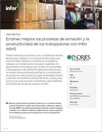 Endries mejora los procesos de almacén y la productividad de los trabajadores con Infor WMS